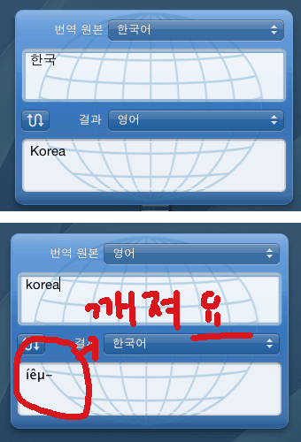 번역기 글씨가 깨져요